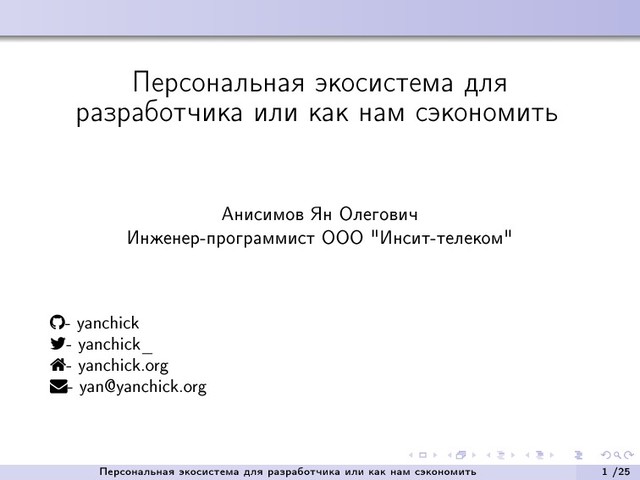 Ян Анисимов. Персональная экосистема для разработчика или как нам сэкономить