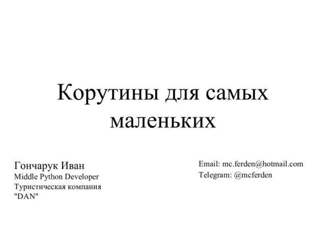 Доклад будет посвящен механизму работы корутин в ЯП Python: какое отношение к ним имеют генераторы, как генераторы превратить в корутины и как реализовать простейший event-loop для асинхронного выполнения корутин.