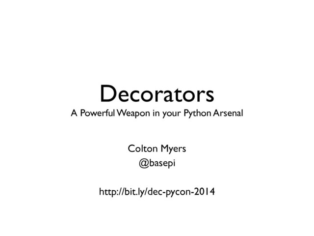 Decorators A Powerful Weapon in your Python Arsenal Colton Myers