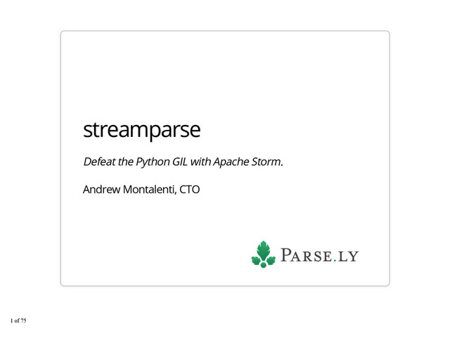 Real-time streams are everywhere, but does Python have a good way of processing them? Until recently, there were no good options. A new open source project, streamparse, makes working with real-time data streams easy for Pythonistas. If you have ever wondered how to process 10,000 data tuples per second with Python -- while maintaining high availability and low latency -- this talk is for you.