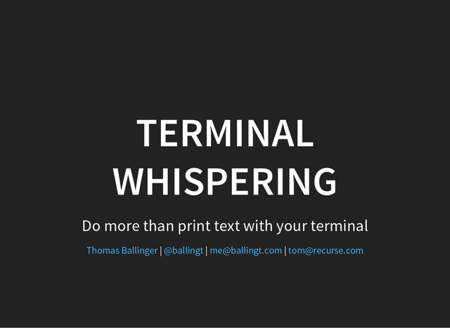 Or maybe color the output a bit? Or do you want to write a fullscreen terminal application like ls, top, vim, or emacs? Then you need to speak a bit of terminal! This talk describes how to talk to your terminal from scratch and goes on to show why Python libraries Blessings and Urwid are so awesome.