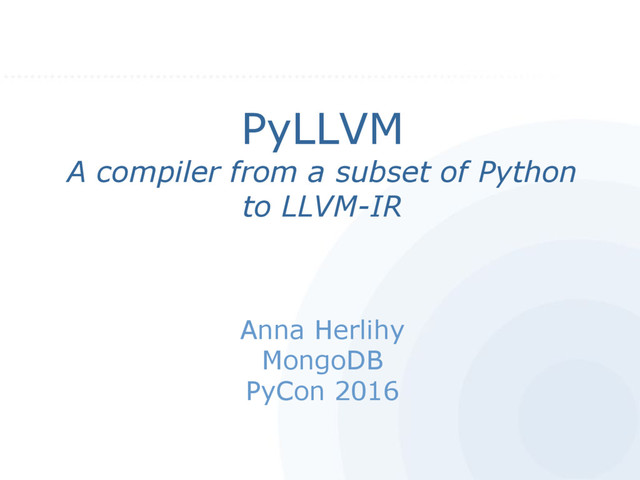 The LLVM Project provides an intermediate representation (LLVM-IR) that can be compiled on many platforms. LLVM-IR is used by analytical frameworks to achieve language and platform independence. What if we could add Python to the long list of languages that can be translated to LLVM-IR? This talk will go through the steps of wrestling Python into LLVM-IR with a simple, static one-pass compiler.