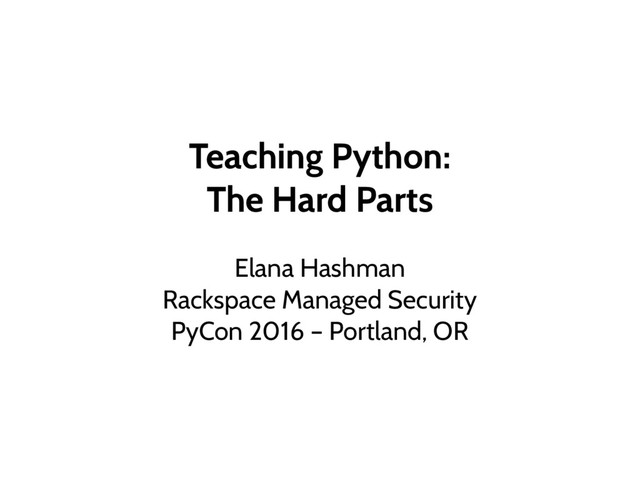 Paul Kehrer, Rackspace Talk links and resources can be found at https://hashman.ca/pycon-2016/