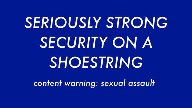 SERIOUSLY STRONG SECURITY ON A SHOESTRING content warning: sexual assault