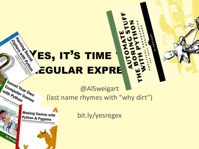 Regular expressions have a reputation as opaque and inscrutable. However, the basic concepts behind "regex" and text pattern recognition are simple to grasp. This talk is for any programmer who isn't familiar with Python's re module and its best practices. Stop putting it off, it's time to learn regular expressions!
