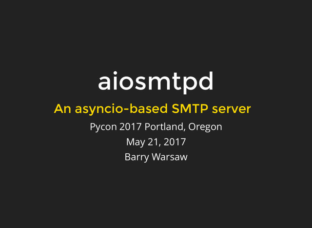 This talk will describe the purpose and history of smtpd.py and aiosmtpd, show how users can extend the servers and implement specialized handlers, and show how applications can use the testing API for ensuring that their email sending applications do the right things. Examples will be taken from GNU Mailman 3, which uses aiosmtpd extensively.
