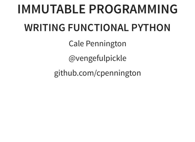 In this talk, I will cover some of the pitfalls of mutability that you may run into while writing Python programs, and some tools and techniques that Python has built in that will let you avoid them. You'll see namedtuples, enums and properties, and also some patterns for structuring immutable programs that will make them easier to build, extend, and test.