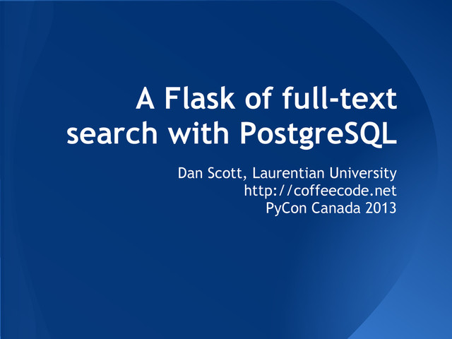 A Flask of full-text search with PostgreSQL [Dan Scott]