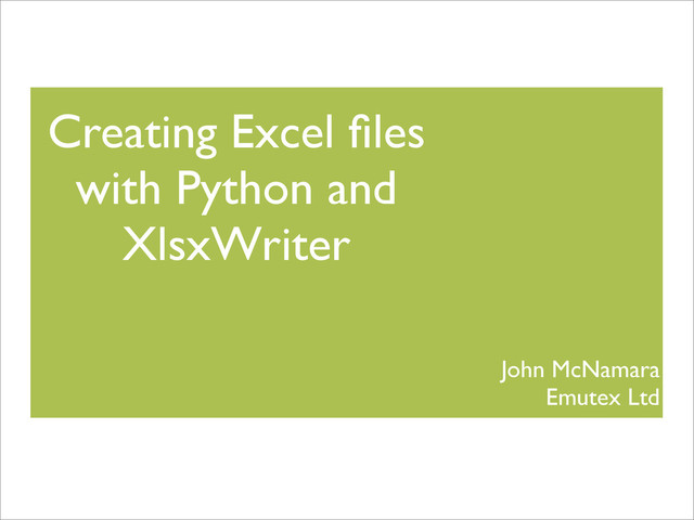 The talk will also show alternative modules such as Xlwt and OpenPyXL.