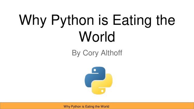 here to promise that if after listening to this presentation, you agree that Python is going to continue to eat the world, you will commit to helping our community continue to grow! Why Python is Eating the World