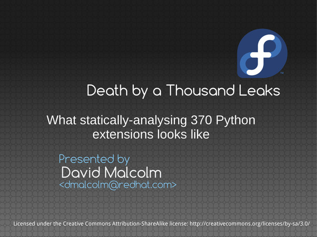 C Python extensions in a recent Linux distribution Specifically: all of the Python 2 C code in Fedora 17 Every source rpm that builds something that links against libpython2.7 370(ish) packages The reality: Some unevenness in the data coverage, so take my numbers with a pinch of salt Lots of bugfixing as I went...