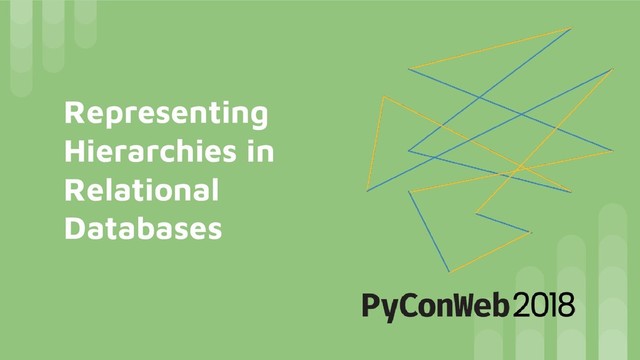 Fortunately there is a clever recipe to represent hierarchies in relational databases using standard SQL techniques, but without the mentioned scaling problem: Materialized Path Trees, discovered by Vadim Tropashko. Django’s ecosystem offers two libraries, which implement this design pattern: django-mptt and django-treebeard. I also would like to mention django-tree, which only works on Postgres, using their SQL extension mentioned before. In this talk I’ll explain the design patterns for Materialized Path Trees. Furthermore I’ll show the pros and cons of both libraries.