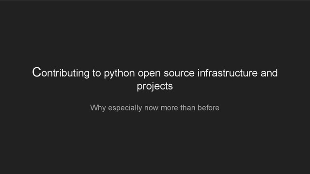This talk shall focus on why python developers need to contribute to the python open source infrastructure and projects now more than before, how one can contribute to python open source Infrastructure and projects and what prominent python open source Infrastructure and projects are available to contribute to.