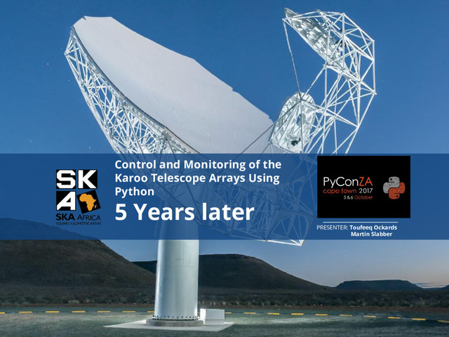 5 years later, Python is still used for Controlling and Monitoring of this world-class instrument, that is on its path to being the most sensitive radio telescope in the southern hemisphere. The 64 dish array completion is around the corner and we take a look back at the last 5 years and our time with Python.