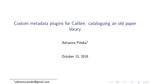 In this talk I will give an overview of how to find resources to help you start writing your own plugin, and describe how I forked and re-wrote a plugin for downloading metadata from the Internet Speculative Fiction Database.