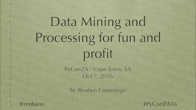 Data mining is a key skill that involves transforming data found online and elsewhere from a hodgepodge of numbers into actionable information. Using examples ranging from RSS feeds, open data portals, and web scraping, this tutorial will show you how to efficiently obtain and transform data from disparate sources.
