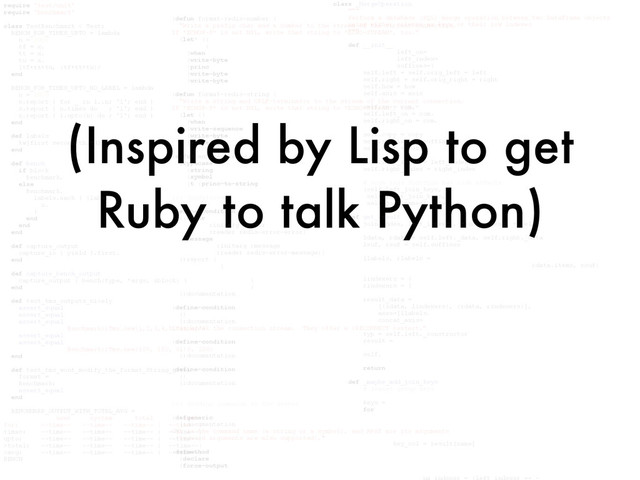 Porting a large existing codebase and accompanying infrastructure from a Ruby to Python ecosystem simply wasn't an option, so we had to do something clever (and fun!).