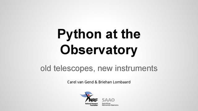 Astronomy in South Africa has a long and illustrious history. In addition to the premier, 10-m Southern Africa Large Telescope (SALT) , there are a number of small- and medium-sized telescopes hosted at the South African Astronomical Observatory that still produce a great deal of valuable data. We'd like to show how we're using new instruments and the nimbleness of Python to bring seventy-year-old telescopes into the 21st century.