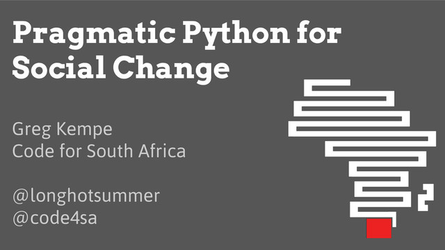Code for South Africa is a civic technology lab that uses Python and open data to promote informed decision making to drive social change. We use our skills for social good.