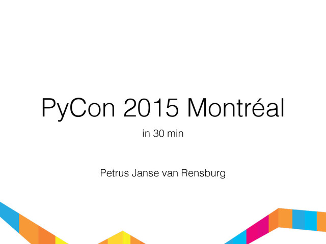 This will be a whirlwind overview of some of the most interesting talks from this year's big PyCon in Montréal. The goal is to boil down the gist of my 10 favourite talks into a single, super-charged talk that gives you a good idea of what went down, but without getting stuck on any particular topic.