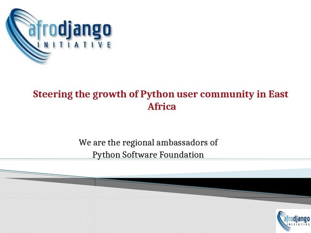 The talk is about the growth of the python user community in East Africa, streamlining the role Afrodjango initiative is playing in building and empowering people with Python software development skills in the region.
