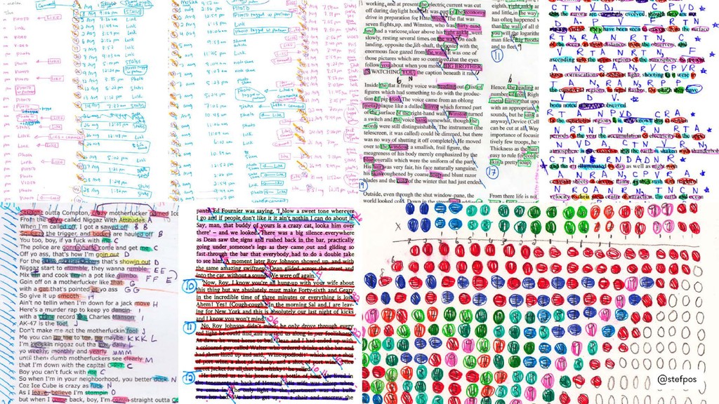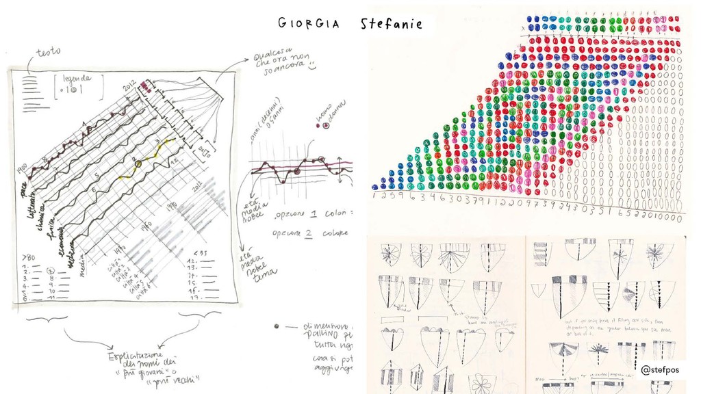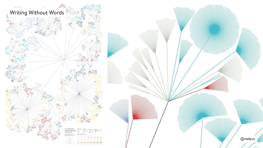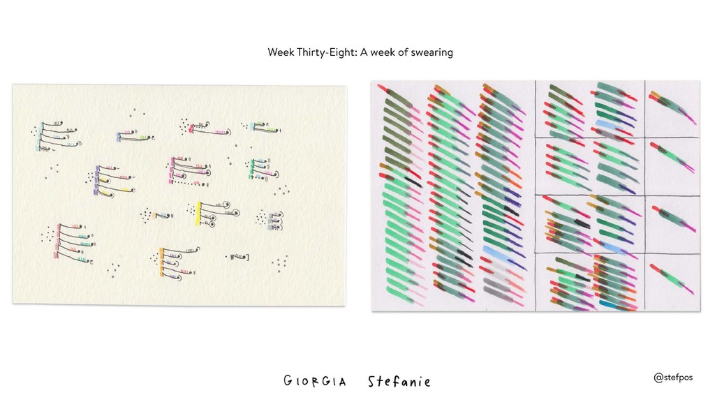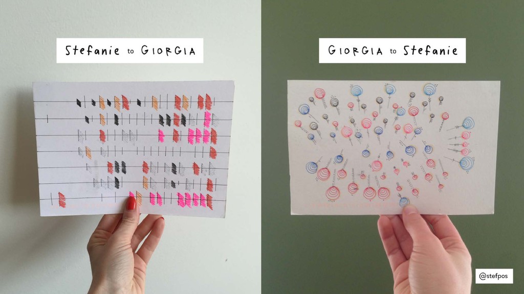 Stefanie Posavec is a designer for whom data is her favoured material, with projects ranging from data visualization and information design to commissioned data art. This work has been exhibited internationally at major galleries.She recently completed an award-winning, year-long data-drawing project with Giorgia Lupi called Dear Data, and a book of this project is published both in the US and UK. The 104 postcards and sketchbooks that form the project are held in the permanent collection of MoMA, New York.