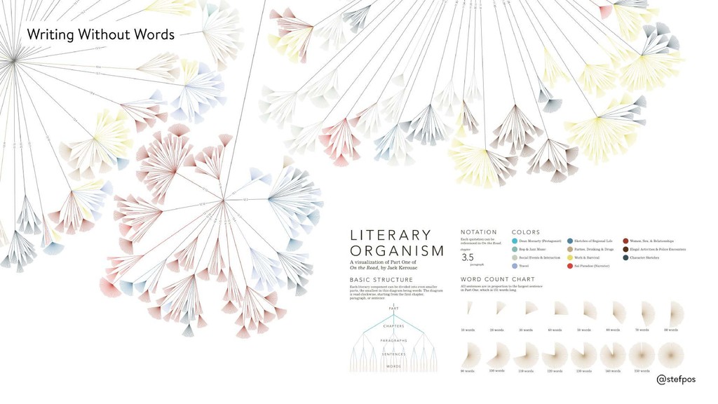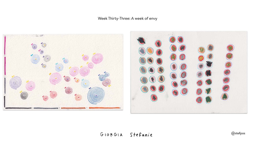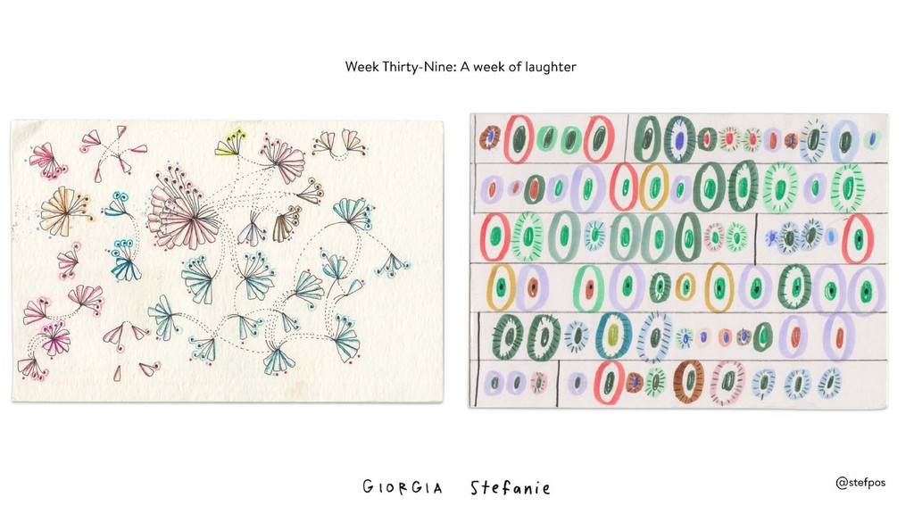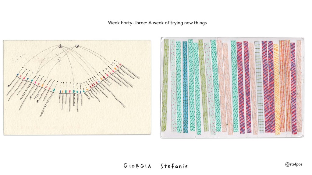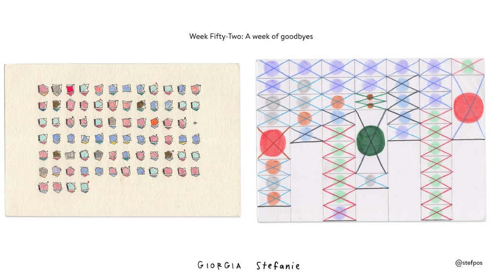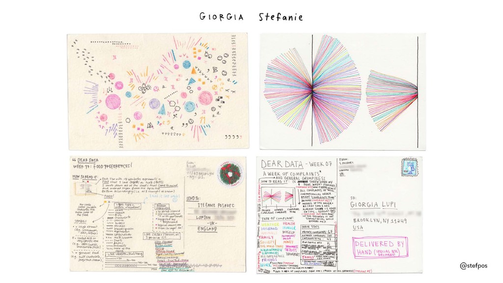 Stefanie Posavec is a designer for whom data is her favoured material, with projects ranging from data visualization and information design to commissioned data art. This work has been exhibited internationally at major galleries.She recently completed an award-winning, year-long data-drawing project with Giorgia Lupi called Dear Data, and a book of this project is published both in the US and UK. The 104 postcards and sketchbooks that form the project are held in the permanent collection of MoMA, New York.