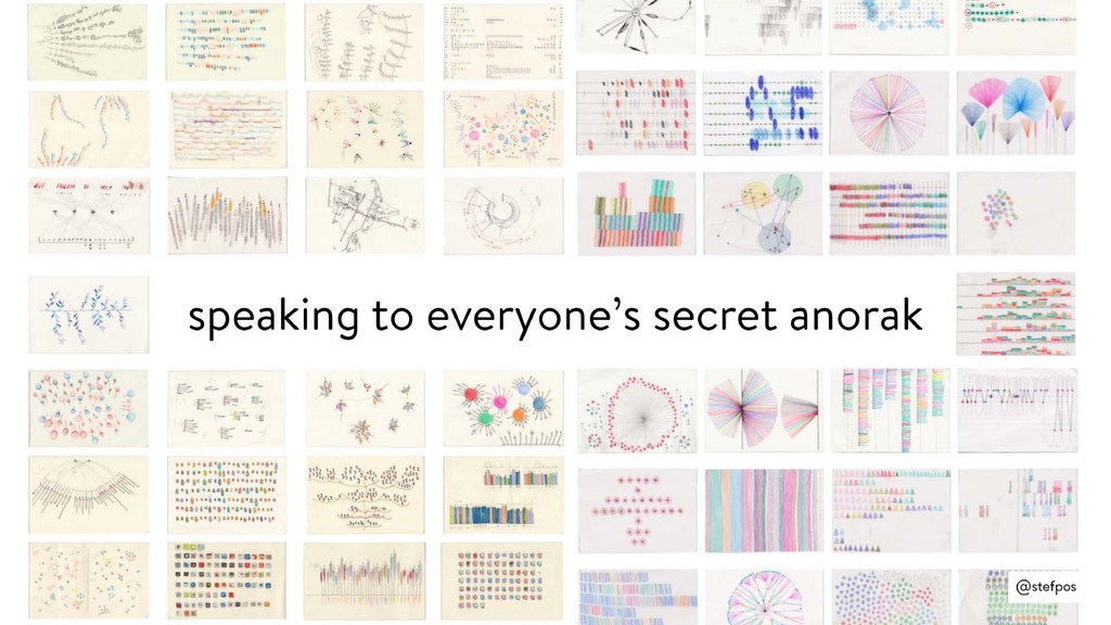 As a designer, Stefanie uses data-gathering and data-visualisation as a design process, taking seemingly ‘cold’ data and using it to communicate warm, subjective and often emotional messages. She will talk about her explorations in making data more engaging, memorable, and accessible to a lay audience new to data and will show how in an era of ever-increasing data, a designer can – through channelling their inner 'anorak' – use this data to inform their own practice and output, and begin to view data through a more human-focused lens in the process.