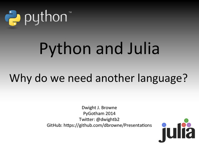 Python and Julia. Why do we need another language? - Dwight J. Browne