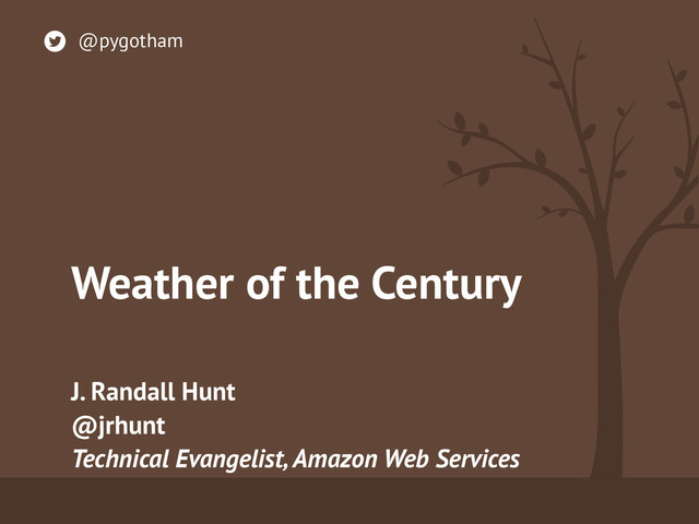 The weather is everywhere and always. That makes for a lot of data. This talk will walk you through how you can use MongoDB to store and analyze worldwide weather data from the entire 20th century in a graphical application. You'll learn how to ask and answer questions about capacity planning and scaling for both real-time and ad-hoc operations when dealing with huge datasets.