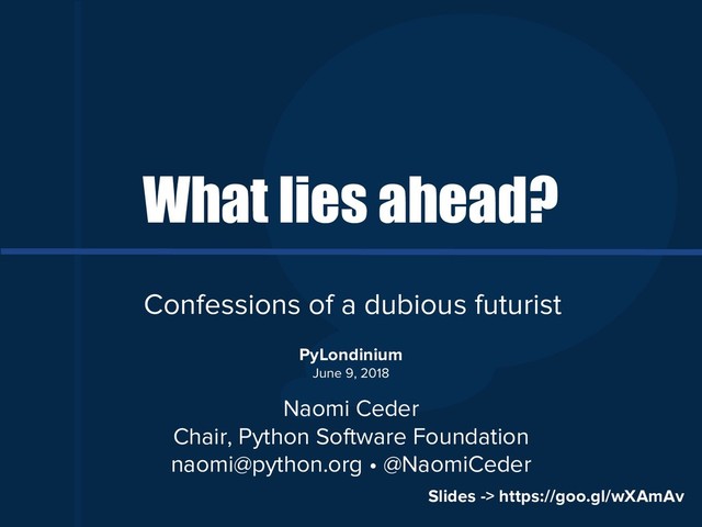 Slides -> https://goo.gl/wXAmAv What lies ahead? Confessions of a dubious