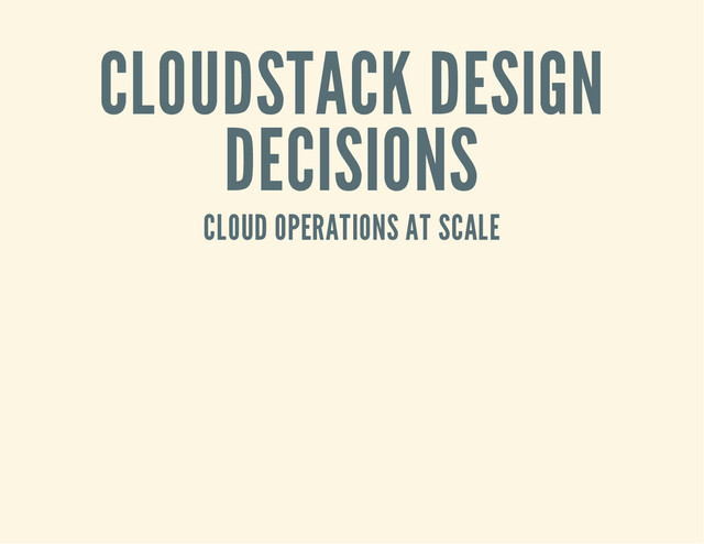 CLOUDSTACK DESIGN DECISIONS CLOUD OPERATIONS AT SCALE