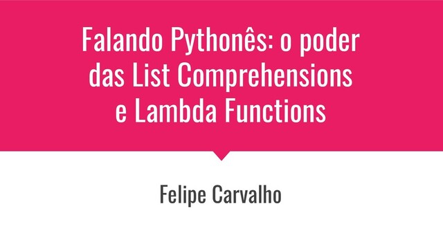 irmão mais velho • Manauara morando em São Paulo desde março 2020 • Formado em Jornalismo, comecei a programar aos 26 anos na faculdade de Engenharia de Computação • Trabalho como desenvolvedor desde 2013 • Membro do PyNorte, fiz parte da comissão de candidatura de Manaus para sediar a Python Brasil 2021 2022 - será a primeira edição na Região Norte! • Estudo Python, GoLang, Microsserviços e Scrum Felipe Carvalho, 33 anos Desenvolvedor back-end