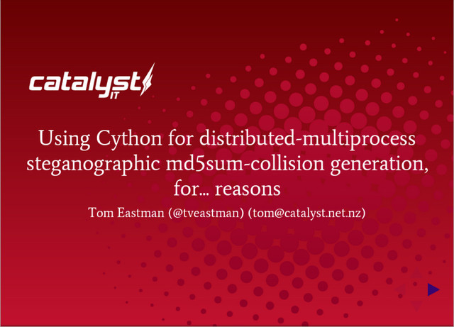 Using Cython for distributed-multiprocess steganographic md5sum-collision generation. For... reasons