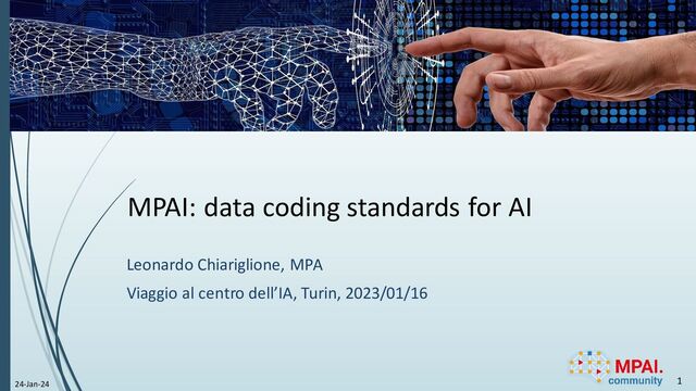 Per far fronte a questa lacuna, MPAI (Moving Picture, Audio, and Data Coding by Artificial Intelligence) ha intrapreso la missione di sviluppare standard per la codifica dati basati sull’intelligenza artificiale, creando Specifiche Tecniche che segmentano applicazioni complesse in AI Modules (AIMs) con funzioni e interfacce ben definite. Questi AIMs possono essere combinati in AI Workflows (AIWs) per costruire applicazioni con operazioni trasparenti e tracciabili