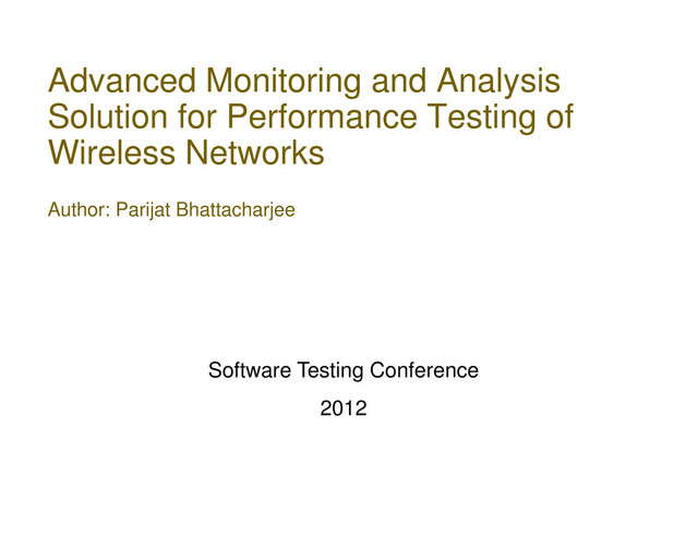 This presentation is among the Top 27 Best Papers/Practice/Tutorials selected, out of 460+ submissions received, to be presented @STC 2012.