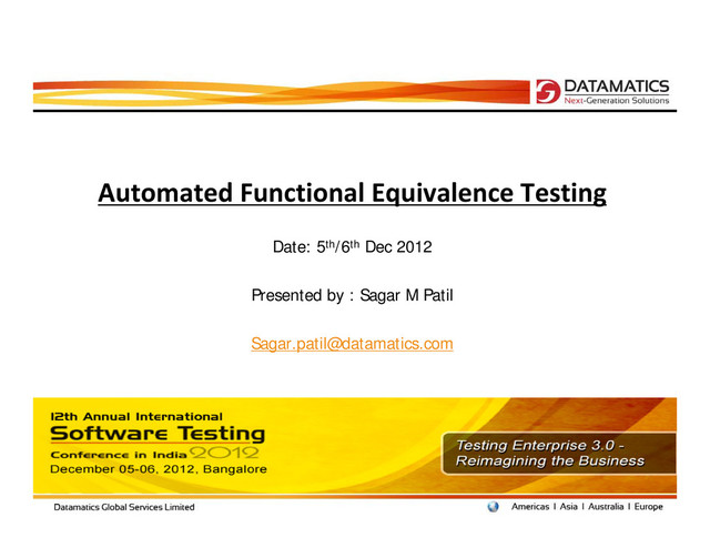 This presentation is among the Top 27 Best Papers/Practice/Tutorials selected, out of 460+ submissions received, to be presented @STC 2012.