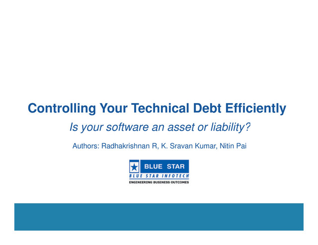 ‘Technical Debt ‘refers to the outcome of ad-hoc ways of writing software code, in an attempt to meet aggressive timelines. As in a financial debt, the interest you pay on a technical debt, in the form of redesign and re-factoring is huge. This makes it essential for every IT organization to identify and control the debt in a periodic and structured manner.