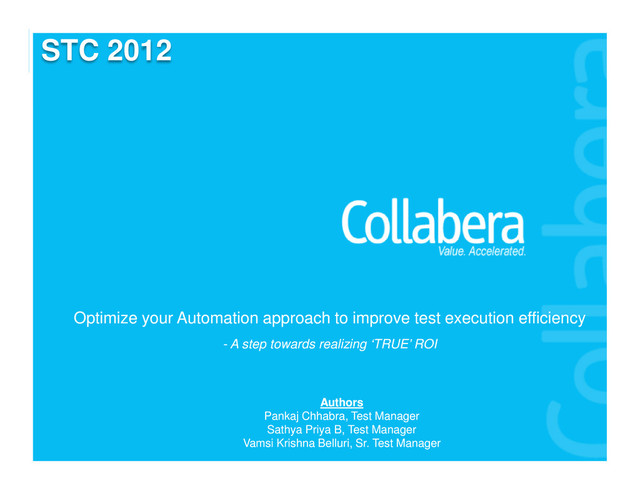 This presentation is among the Top 27 Best Papers/Practice/Tutorials selected, out of 460+ submissions received, to be presented @STC 2012.