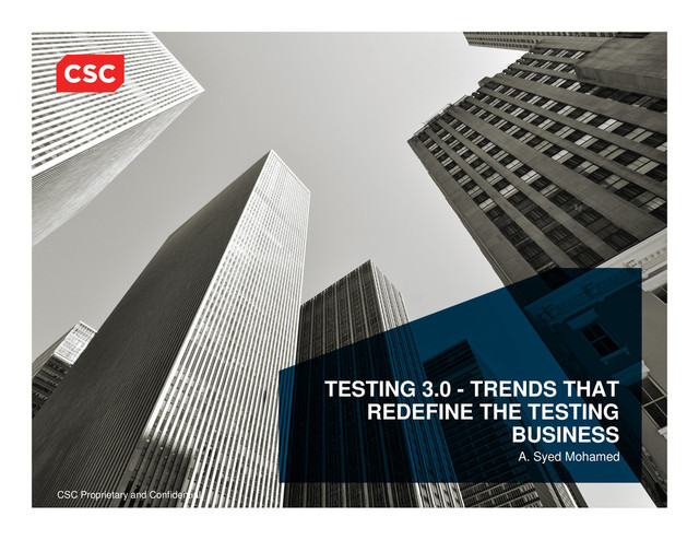 •Need of the hour - How to be successful in delivering Testing 3.0 Services