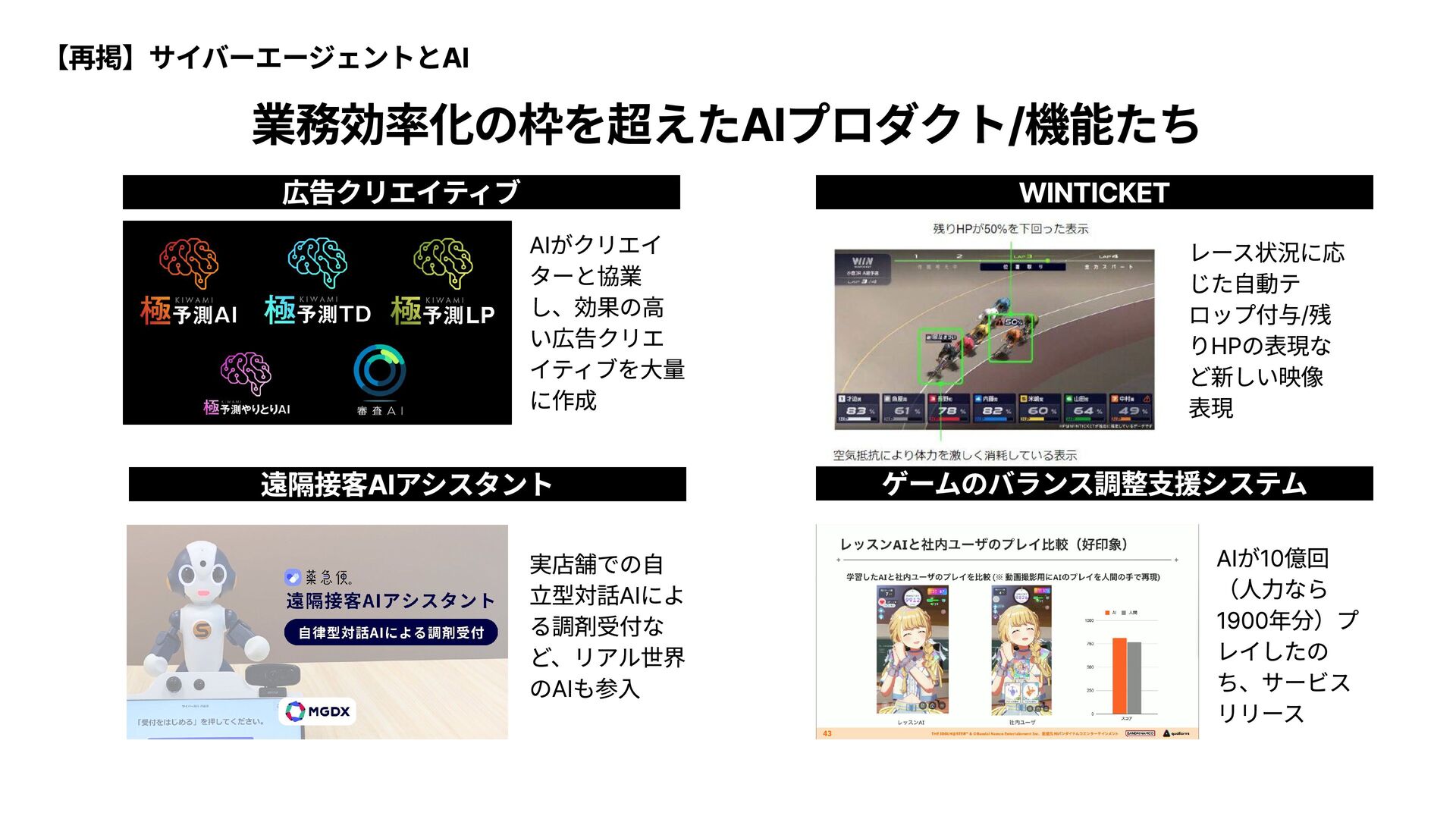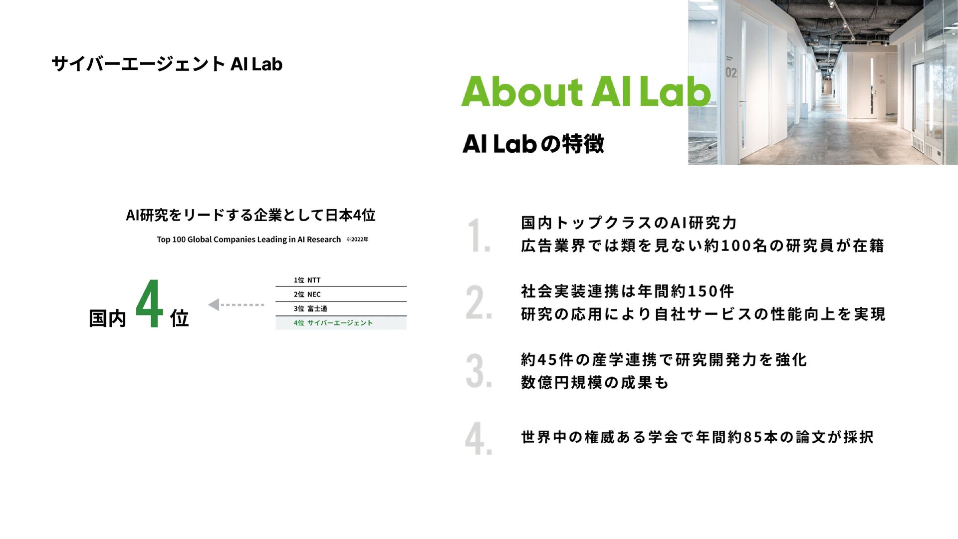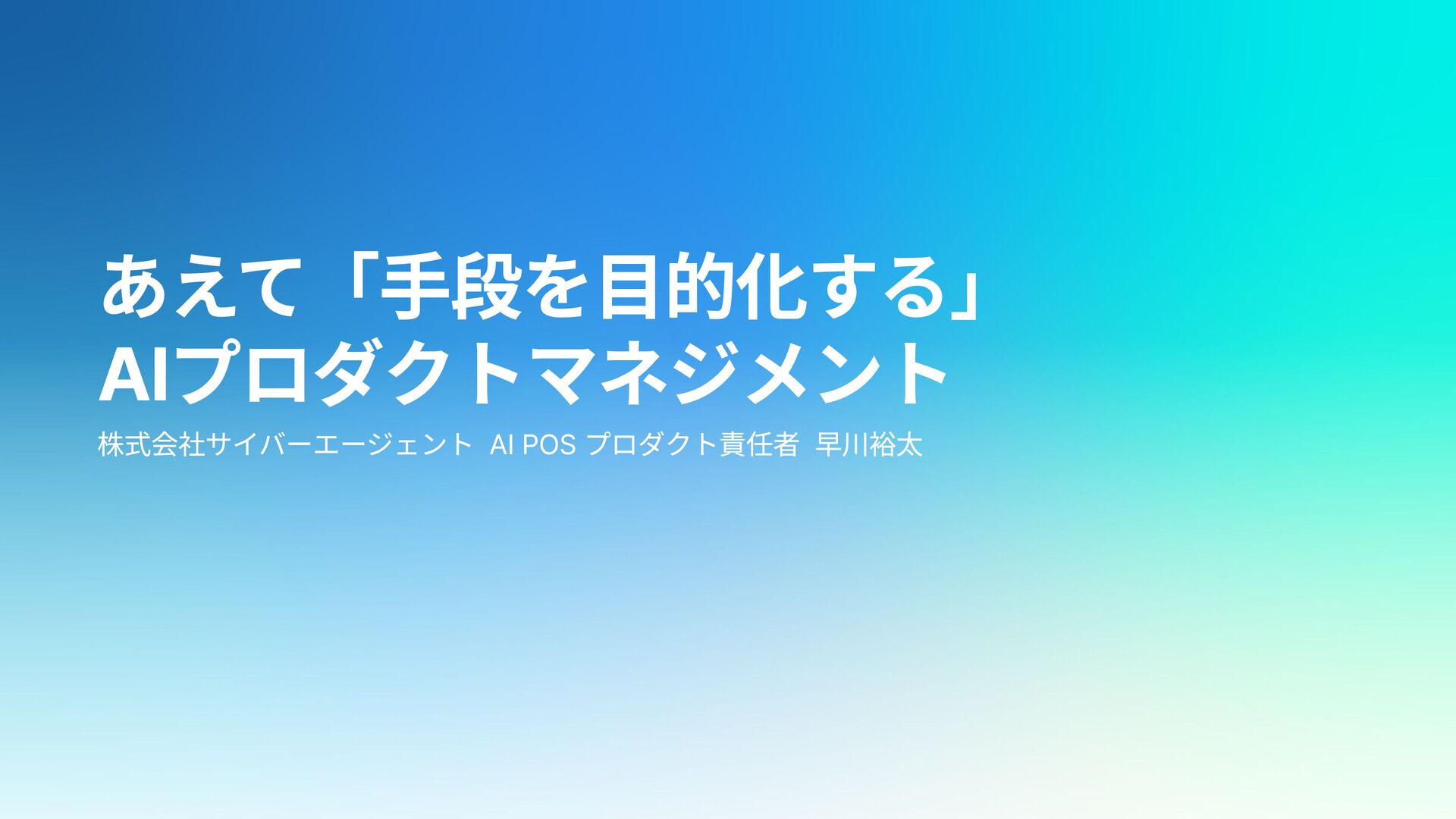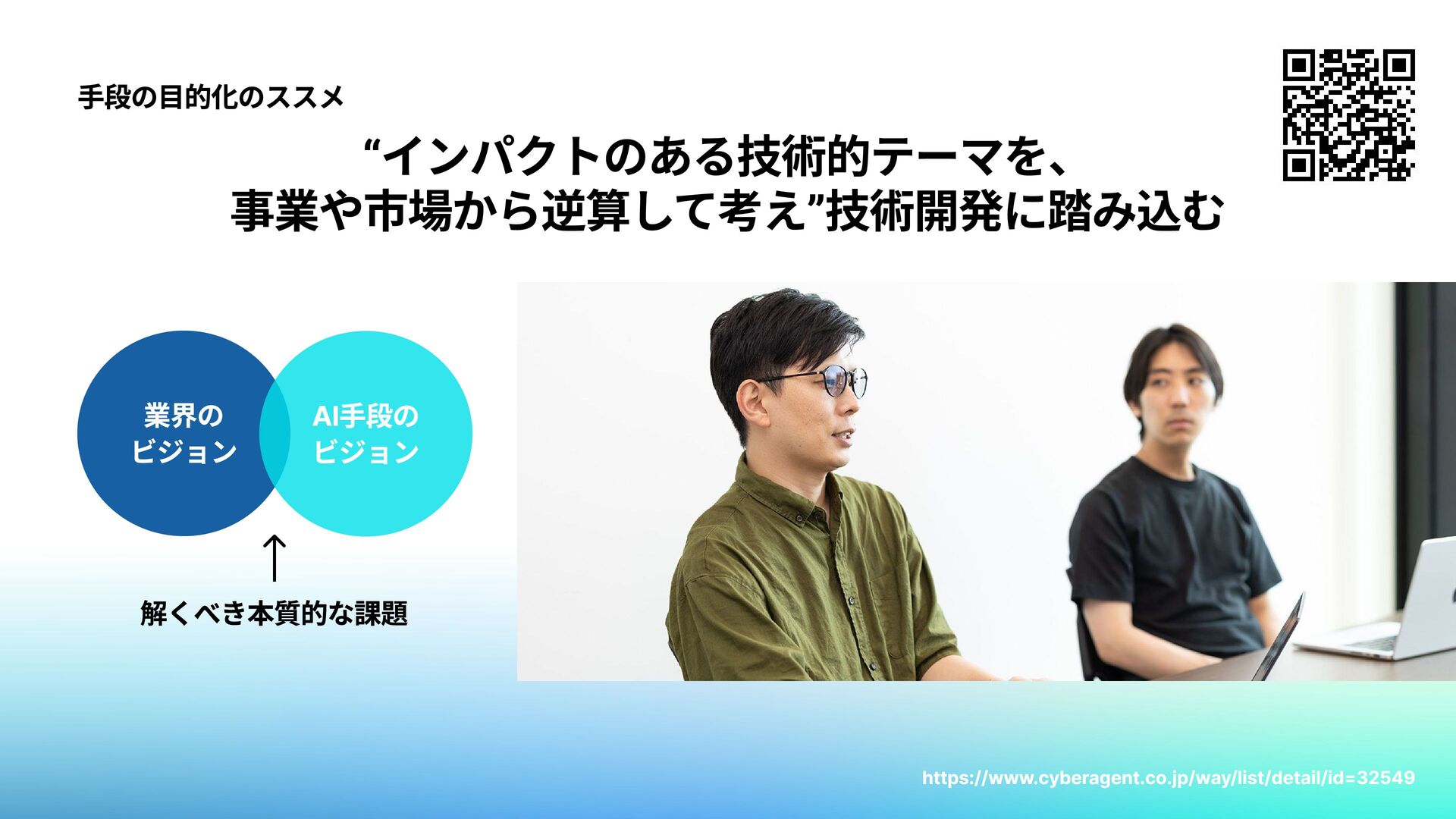 サイバーエージェントの「自由と自己責任」でやってみる文化。10年以上にわたって技術の最前線を走るAI Lab。これらを背景にした「手段を目的化する」考え方と実践について、私の担当するプロダクト「AI POS」の話を中心に紹介できればと思います。