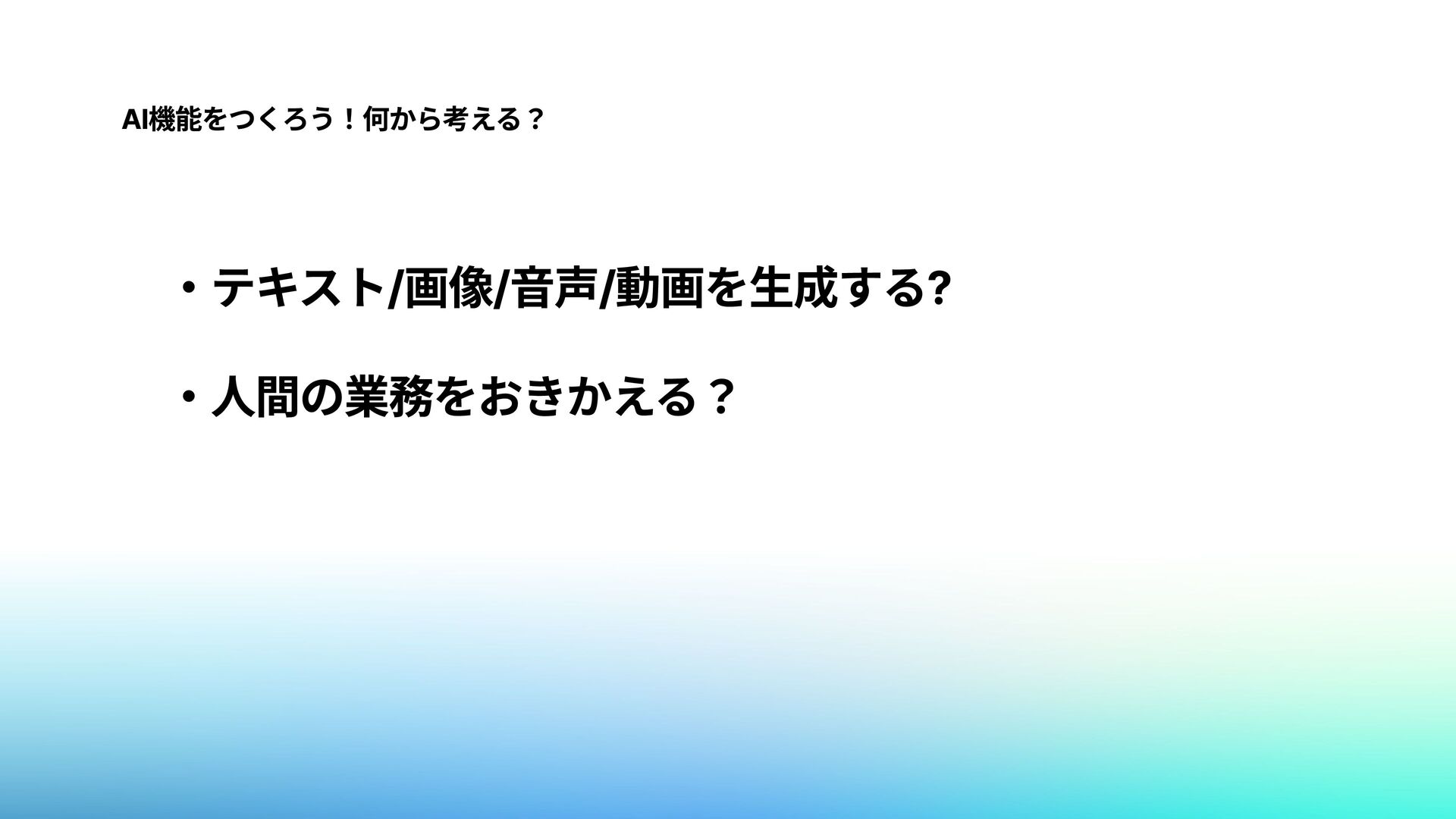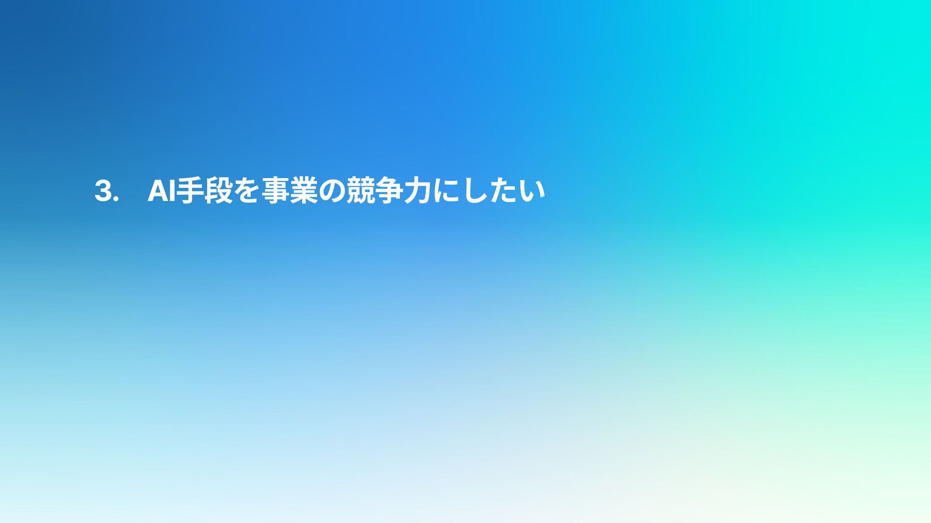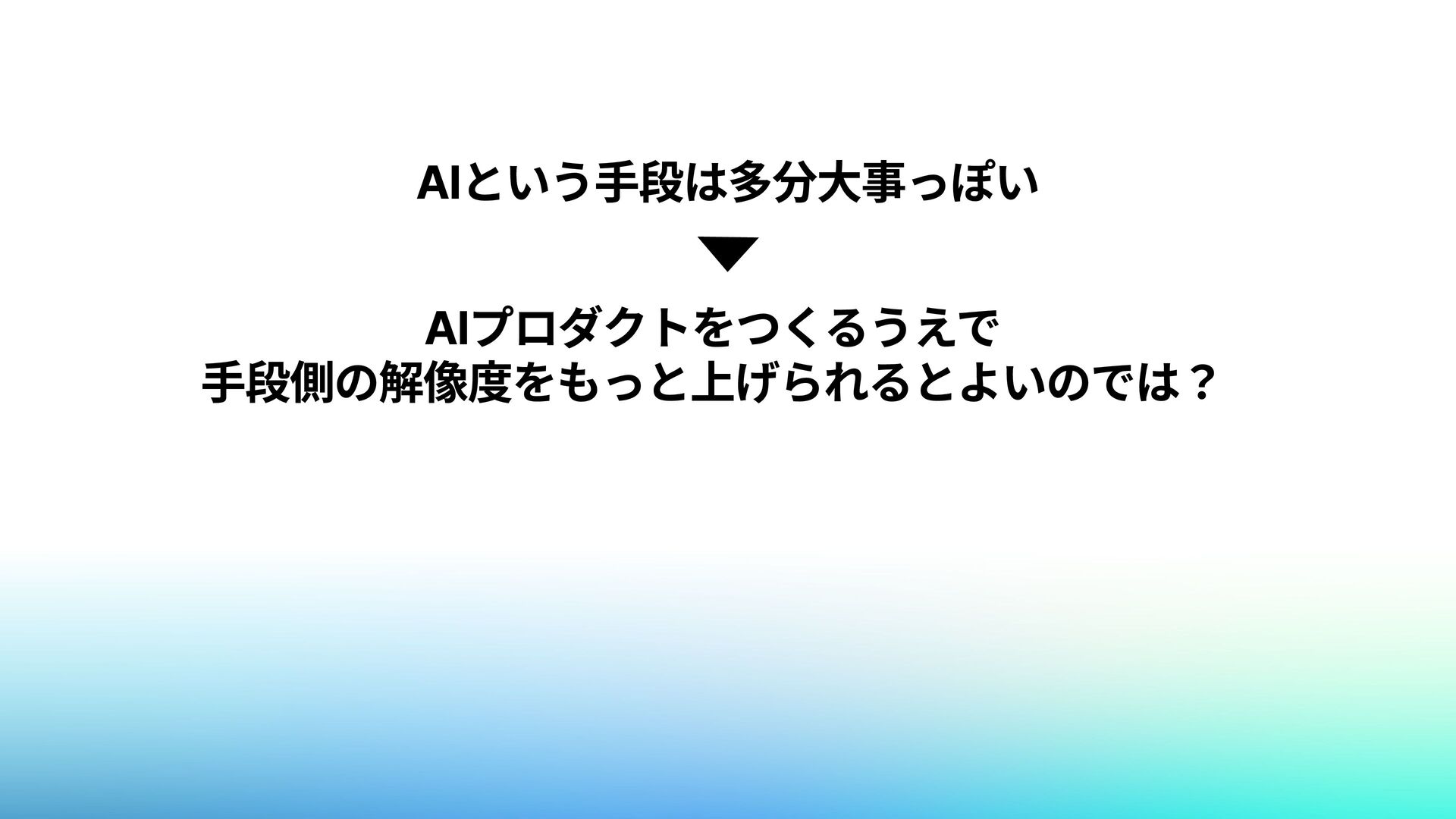 ...という定説を少し疑って、AIという手段のことを先に考えたほうがいいのかも?という話をします。