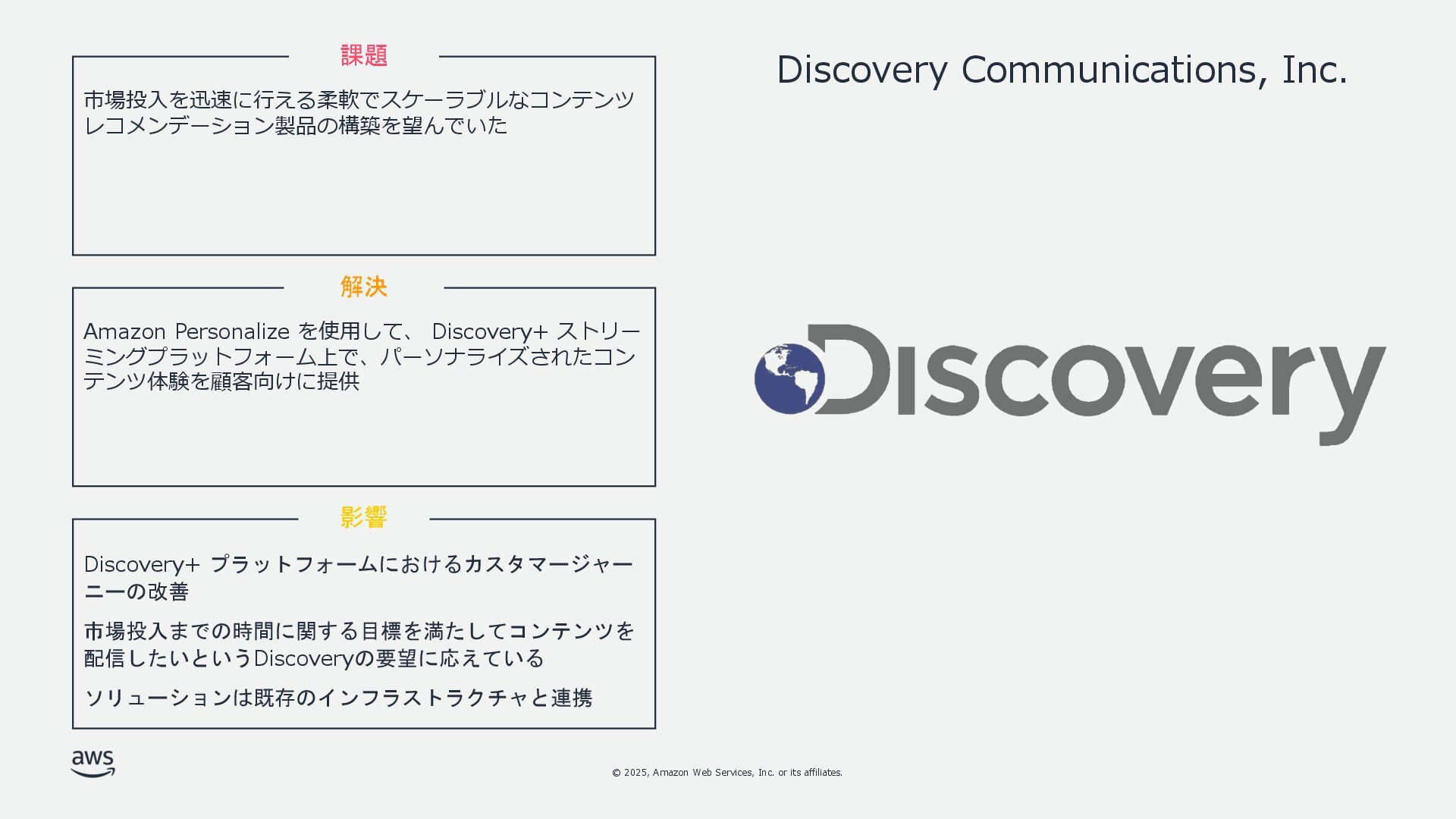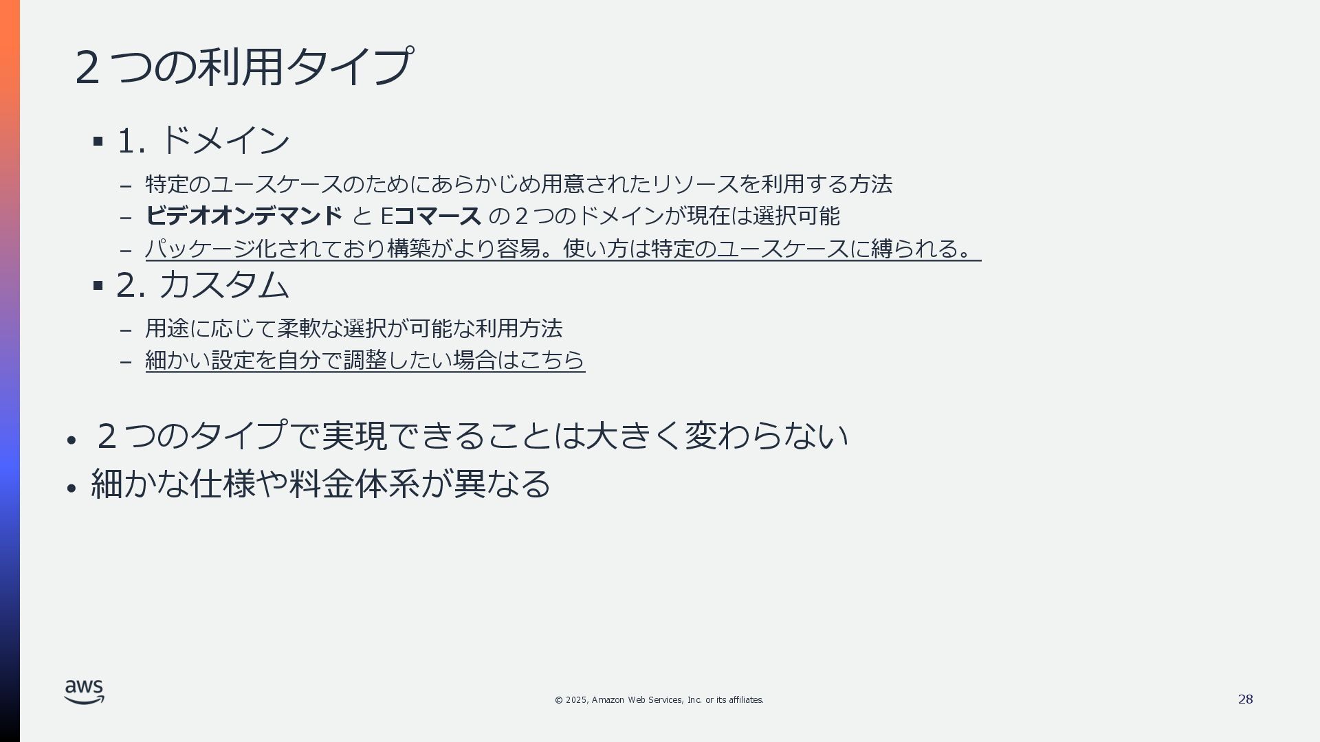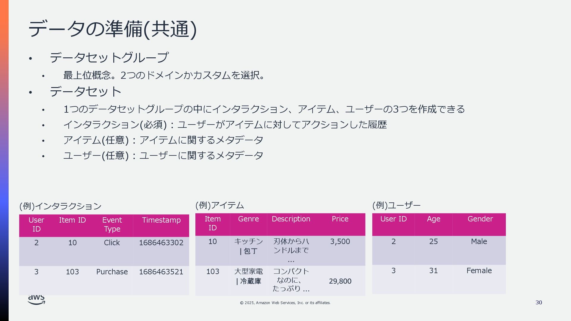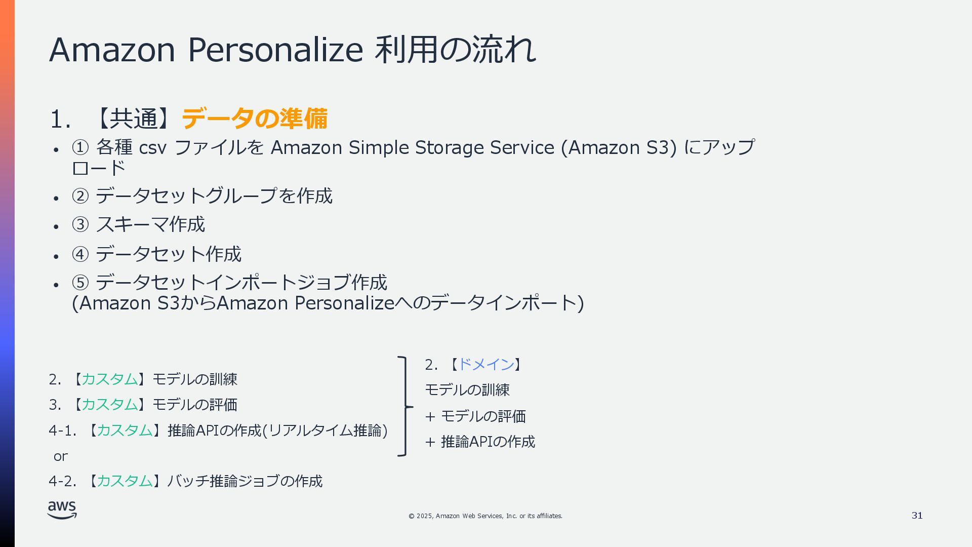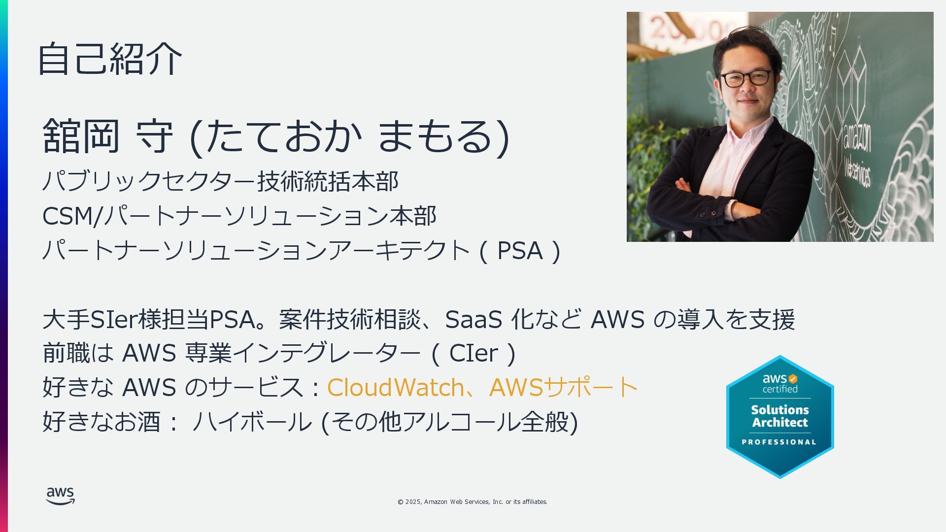 2025, Amazon Web Services, Inc. or its affiliates. Amazon Personalize 機械学習を使⽤して、ユーザ⼀⼈ひとりに合わせたレコメ ンデーションを提供し、ビジネスの成⻑を促進させる Mamoru Tateoka Amazon Web Services Japan G.K.