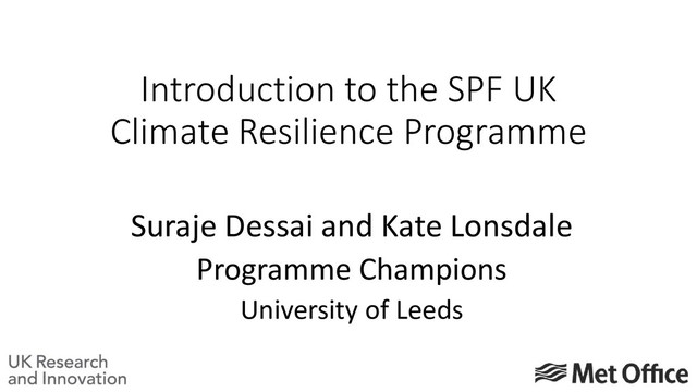 Wave 1 of SPF • Jointly led by NERC (on behalf of AHRC, ESRC and EPSRC) and Met Office • Workshop held in September 2018 to help draw the community together • Ministerial announcement in October 2018 UKRI