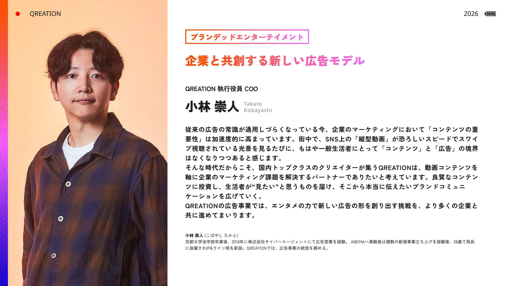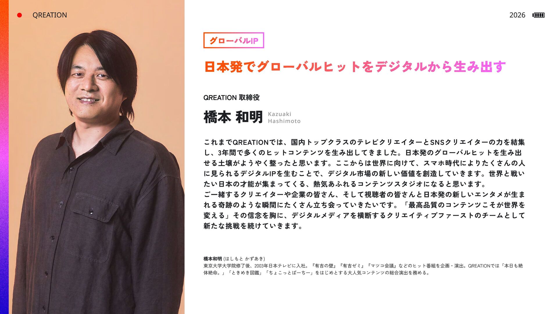 2021tkŽ˜SNS™U‰Y‰sý¹¿üÈ¢Ã×mûDispon«óÈêüÞÍü¸ãük1û;kZãQÞü±Æ£ó°h³ßåËÆ£Þ͸áóÈkfi‰WjL›å,‰mËa R™Ljc_ 2023t2kìËW*ˆ>QREATION™um(ôÑgo`ä²;n·çüÈÉéÞ·êüº Dd`cfvunxž n×íÇåüµüûãc‡Ù†¹ÞÛK›ØÁên³óÆóÄ×íÇåü¹™KłQ‰ ãhÖày/CEO s8 -Q SNSÏÕ©íïüp 250º™–H‰ÞëÁ¯ê¨¤¿ü 9h‹x hWf;“0 âjD r~dvX å,ÆìÓ xnì®åéüúji;“n4™…R_„k— PodcastjD 9h‹x 鸪KfiËÃÝó> kfÑü½ÊêÆ£üji;“n4™…RfD‰U›ko¨ó¿áK›òߊ~gB›ƒ‰m×íâü·çókJQ‰³óµëÆ£ó°—;û6\jiӸ͹µ¤ÉnmÙ‡ÅcfD‰ ]n„QREATION™q umþ(go åê¨ü·çófb a⁄Schqüaü jinú™KłQ‰ Öày 9 9h‹x q¬'f'fb2003tå,ÆìÓke> nÁ ¼ßÞijˆpjinÒÃÈjD™;ûú24BfiÆìÓnÏú‡Ù†‰2024t11koAmazon´üëÇó³óÓLM™rŠNetflix ¢·¹È gMABEMA˙nϤ¨Ê‡'ÒÃÈk°_jMá³óÆóÄnïý'k!h&WfD‰ (QREATIONgo ,å‡vSv} hM†MóQ a⁄Schqüaü ™oX†hY‰'º³óÆóÄnÏú™Ù†‰ Öày K, „ ¬ý'fÕfèRm„2018tk*ˆ>µ¤Ðü¨ü¸§óÈkf…J¶m™LW3tîkÞÍü¸ãüx< ABEMAxpÕ„opn°‘‰mËa R™L„@whWfIP&é¤Äèr™°-ó}/ Ï/¢üÆ£¹ÈInIPÞÍ¿¤º™ÅSW_h>*gn¡(/²×í¸§¯Èjik‡ˆp:‘−>–hpL‡ˆp QREATIONgoK˙·çüÈÉéÞ hM†MóQ —²Ñ‰·çüÈÉéÞ ³ónªT ji™×íÇåüµühWfKłQ‰ …J‰mqì×íÇåüµü Š º