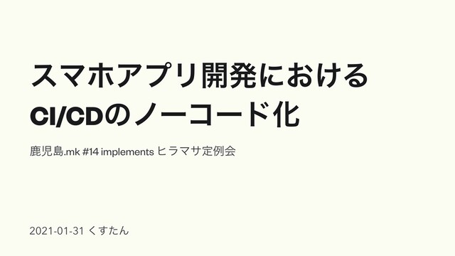 εϚϗΞϓϦ։ൃʹ͓͚Δ CI/CDͷϊʔίʔυԽ ࣛࣇౡ.mk #14 implements ώϥϚαఆྫձ 2021-01-31 ͨ͘͢Μ