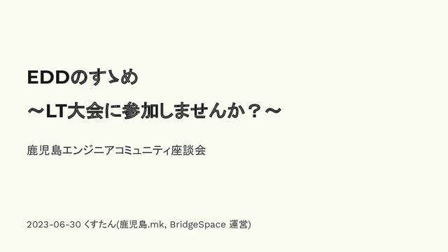EDDのすゝめ 〜LT大会に参加しませんか?〜 鹿児島エンジニアコミュニティ座談会 2023-06-30 くすたん(鹿児島.mk, BridgeSpace 運営)