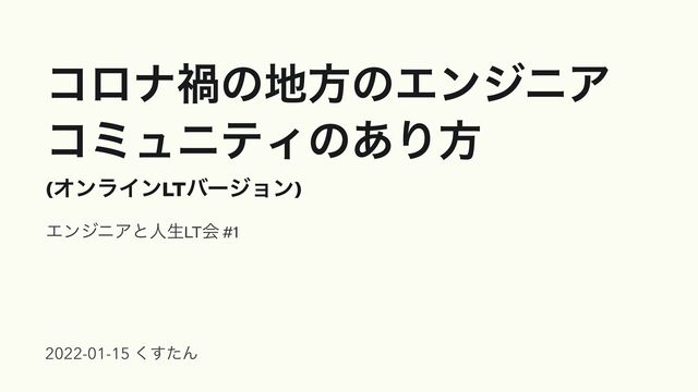 ίϩφՒͷํͷΤϯδχΞ ίϛϡχςΟͷ͋Γํ (ΦϯϥΠϯLTόʔδϣϯ) ΤϯδχΞͱਓੜLTձ #1 2022-01-15 ͨ͘͢Μ
