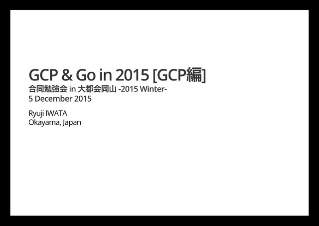 12/5(土)に岡山で開催された「合同勉強会 in 大都会岡山 -2015 Winter-」での発表資料「GCP & Go in 2015 [GCP編]」(10分)です。