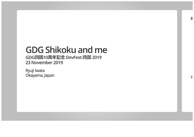 2019年11月23日(土)に香川で開催された「GDG四国10周年記念 DevFest 四国 2019」での私のLT資料「GDG Shikoku and me」です。オリジナルURL:https://talks.godoc.org/github.com/qt-luigi/talks/2019/gdgshikoku-and-me.slide#1